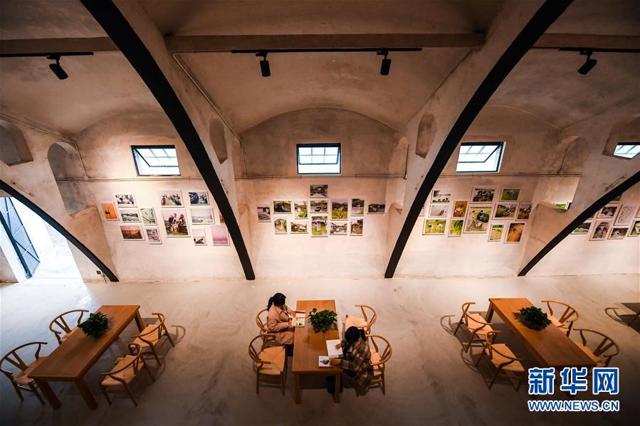 12月20日,村民在舊糧倉改建的“漾西書吧”內(nèi)看書。
