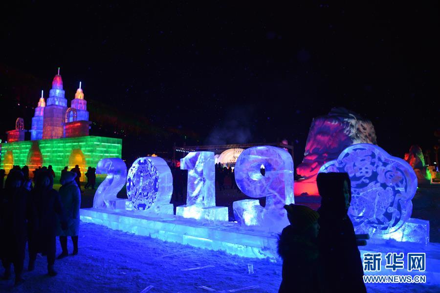 12月21日,游客在冰雪節(jié)開幕式上參觀冰雕。新華社記者鄒予攝
