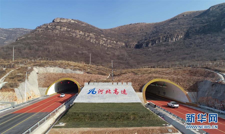12月16日,兩輛汽車行駛在京秦高速公路二期工程河北玉田境內(nèi)的鳳凰頂隧道路段(無(wú)人機(jī)拍攝)。 新華社記者楊世堯攝