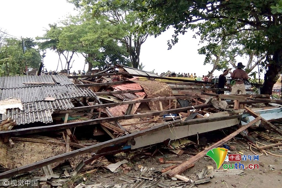 印尼海嘯遇難人數(shù)已升至62人 現(xiàn)場(chǎng)大量房屋倒塌