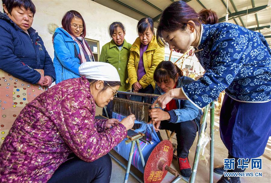 12月25日,在衡水市冀州區(qū)一家老粗布生產(chǎn)企業(yè),田園棉手織粗布傳承人(右一)在指導(dǎo)村民學習田園棉手織粗布技藝。 2018年以來,河北省衡水市冀州區(qū)依托當?shù)氐氖〖壏沁z田園棉手織粗布技藝資源,采取“非遺+扶貧”的模式,通過非遺傳承人開展技能培訓(xùn)、老師傅傳幫帶等,讓貧困村民在傳承非遺文化的同時學習傳統(tǒng)技藝,助力脫貧致富。 新華社記者 李曉果 攝