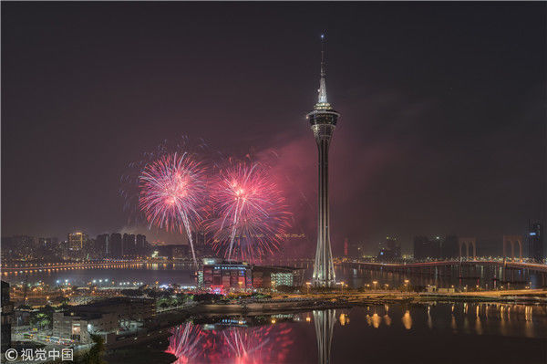 2018年1月1日,凌晨,澳門跨年煙花匯演。2018年元旦澳門舉行的跨年煙花匯演。