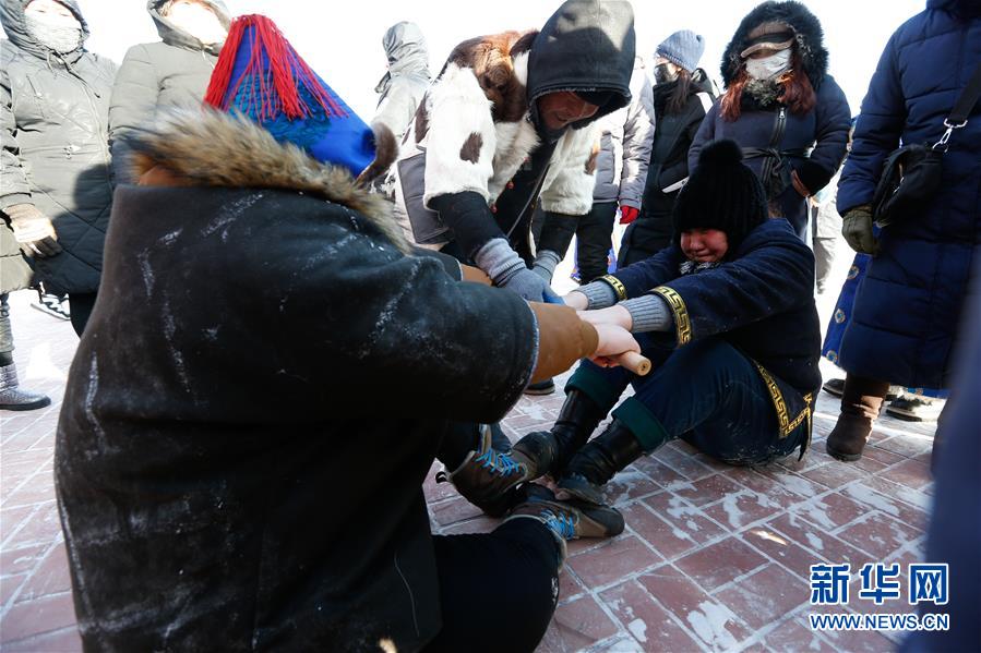 12月26日,牧民在進(jìn)行“扳棍”。 當(dāng)日,內(nèi)蒙古冰雪那達(dá)慕系列活動在呼倫貝爾市鄂溫克旗繼續(xù)進(jìn)行,牧民歡聚一堂,參加各種賽事和趣味項(xiàng)目。 新華社記者 虞東升 攝