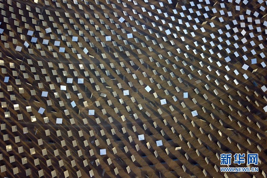 這是在敦煌市光電產(chǎn)業(yè)園區(qū)拍攝的敦煌100兆瓦熔鹽塔式光熱電站局部(12月25日無人機拍攝)。 新華社記者 范培珅 攝