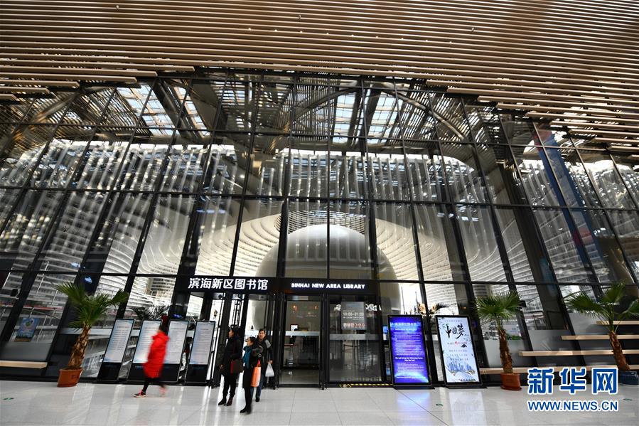 這是12月27日拍攝的天津濱海新區(qū)圖書館入口。 濱海新區(qū)圖書館位于天津濱海文化中心,2017年10月1日正式開館,設計立意為“濱海之眼”和“書山有路勤為徑”。圖書館現(xiàn)有藏書60多萬冊,一年多來接待讀者約280萬人次,已成為濱海新區(qū)的文化“新地標”。 新華社記者李然攝