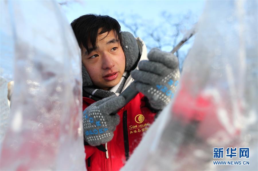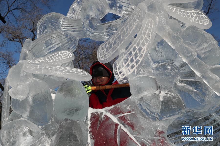 12月27日,選手在比賽中完善冰雕作品。 當(dāng)日,第十六屆黑龍江省大學(xué)生冰雕藝術(shù)設(shè)計創(chuàng)作大賽在哈爾濱兆麟公園落下帷幕,全省高校共有99支隊(duì)伍參賽。 新華社記者曹霽陽攝