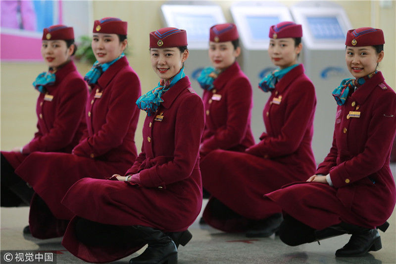 2018年12月27日,四川成都,為備戰(zhàn)即將開通的成雅鐵路,中國鐵路成都局集團(tuán)有限公司成都客運(yùn)段動車二隊對成雅動車的乘務(wù)人員進(jìn)行理論、形體、服務(wù)禮儀等內(nèi)容的培訓(xùn)。