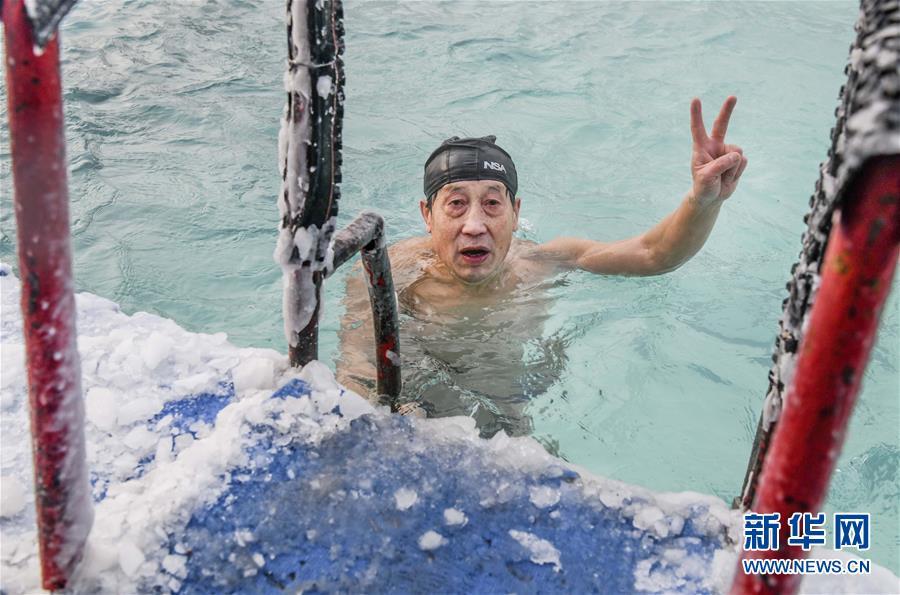 當日,新疆烏魯木齊戶外氣溫接近零下20攝氏度,許多冬泳愛好者不懼嚴寒,來到烏魯木齊紅山游泳中心戶外泳池進行冬泳運動,鍛煉身體,磨練意志。