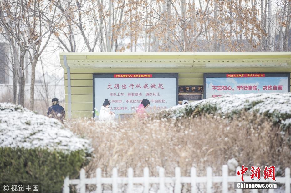 山東濱州發(fā)布道路結冰黃色預警信號市區(qū)出現(xiàn)較明顯降雪,路表溫度低于0℃。圖片來源:視覺中國