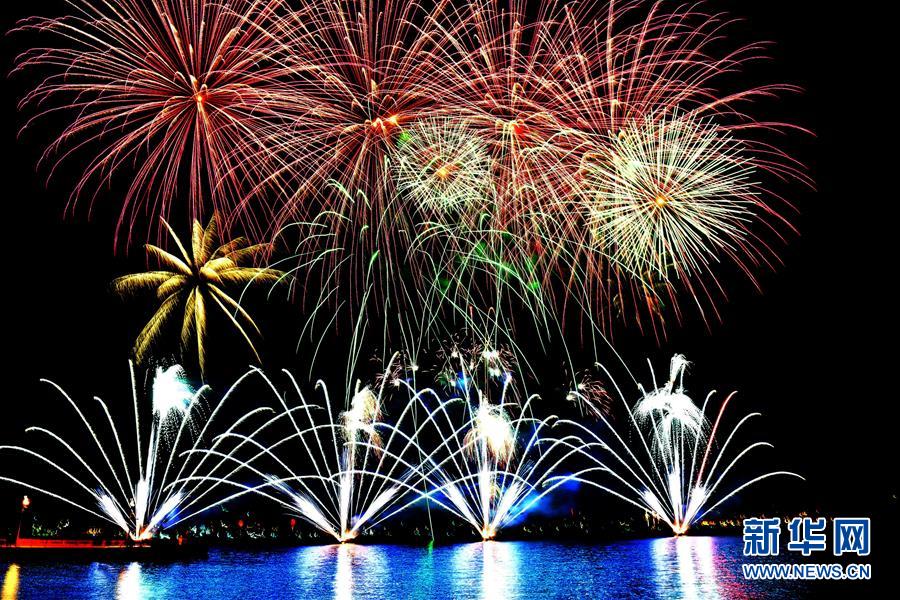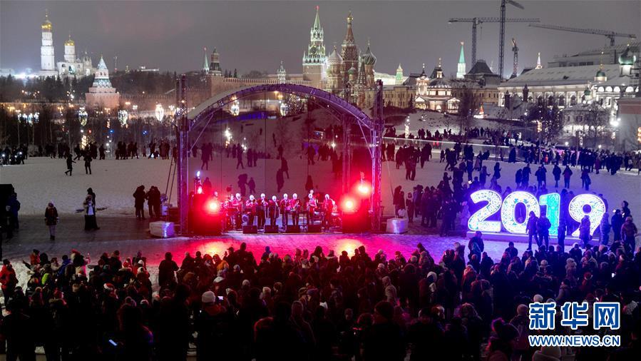 1月1日,在俄羅斯首都莫斯科,人們參加迎新年活動(dòng)。 新華社記者白雪騏攝