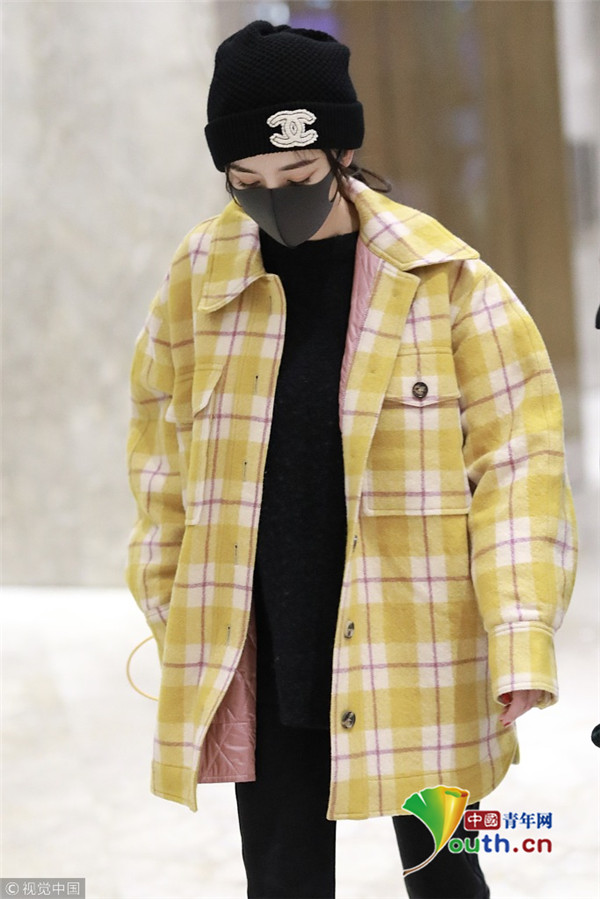 2018年1月6日,上海,楊冪現(xiàn)身某酒店。她戴著帽子口罩,身穿黑色套裝,而外面搭配的奶黃格子外套卻瞬間減齡,明亮又惹眼,無懼寒冬露著纖細(xì)腳踝,依舊是那個(gè)很會(huì)穿搭的大冪冪。