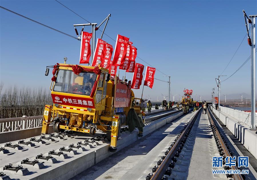當(dāng)日,京張高鐵官廳水庫特大橋鋪軌工作完成。京張高鐵全長174公里,是2022年北京冬奧會的重要交通保障線。