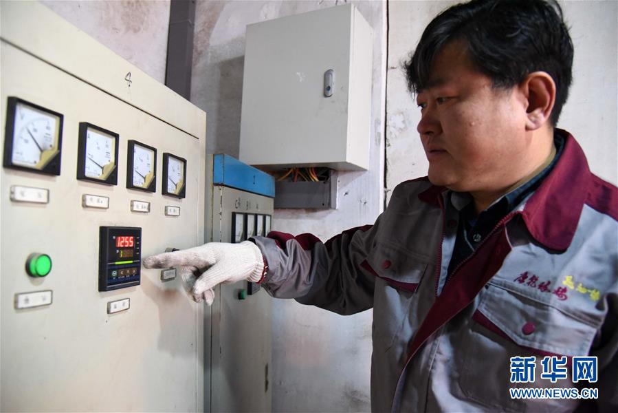 1月12日,孫云毅在展示他引入的電動控溫設(shè)備,目前爐溫顯示1255攝氏度。 新華社記者王凱攝