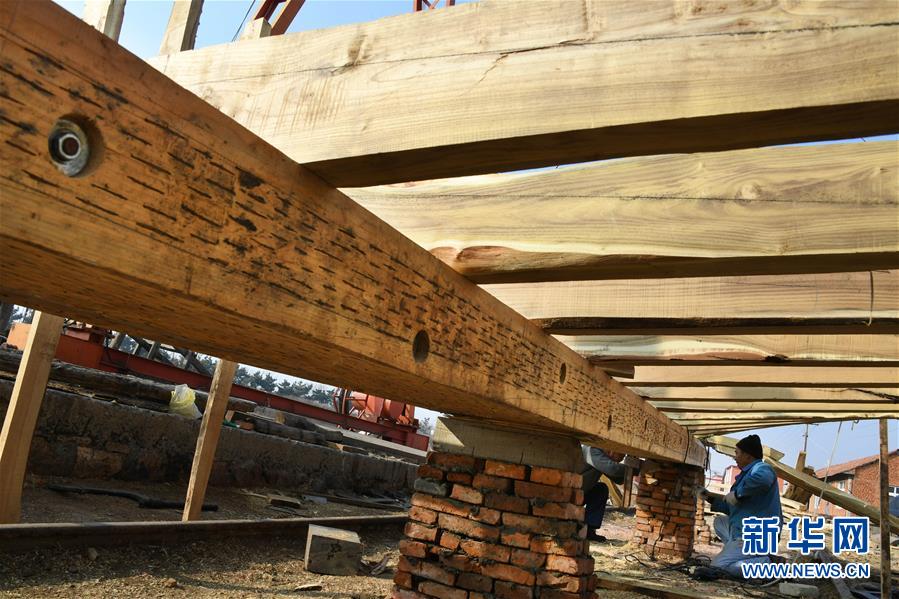 劉雙林在用墨斗測量安裝角度(1月10日攝)。新華社記者 李紫恒 攝