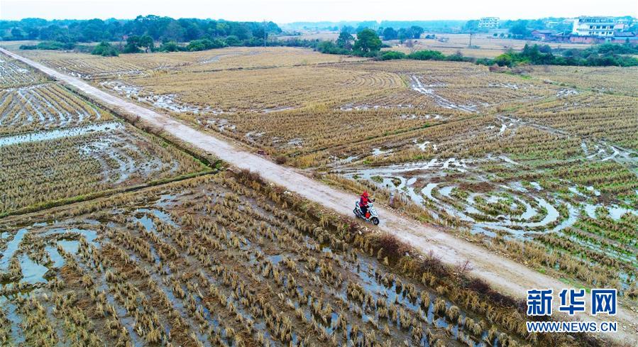 1月3日,章站亮騎摩托行駛在前往學校的路上(無人機拍攝)。 新華社記者 胡晨歡 攝