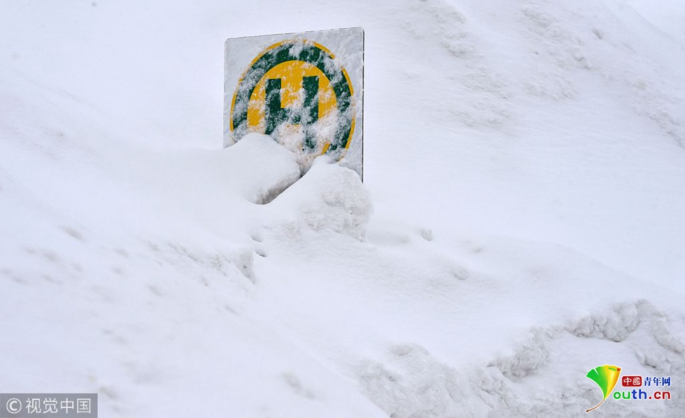 奧地利暴風(fēng)雪持續(xù) 公交車(chē)站被積雪掩埋