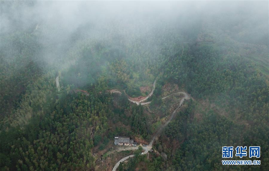 位于龍泉市牛頭嶺村群山之中的“七分醉”工作室(1月15日無人機(jī)拍攝)。 新華社記者翁忻旸攝