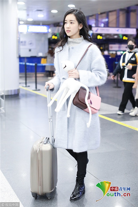 2019年1月27日,北京,陳都靈現(xiàn)身機(jī)場(chǎng)。手里拿著可愛白色公仔的她深夜現(xiàn)身機(jī)場(chǎng),皮膚狀態(tài)仍非常好,羨煞旁人。