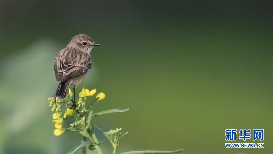 初春時節(jié),福建省福州市盛開的油菜花枝頭上不時有小鳥停落,多彩多姿的小鳥與金黃色的油菜花融為一體,讓人感受到濃濃的春天的氣息。