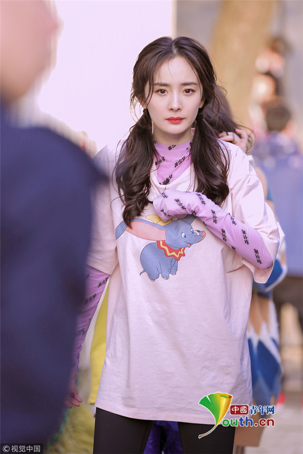 2019年3月12日,湖南長(zhǎng)沙,楊冪錄制某綜藝節(jié)目路透曝光。她扎著雙馬尾甜美可愛(ài)似少女,穿oversized的牛仔外套和寬大T恤,戴著防曬的護(hù)袖,身材十分纖細(xì)苗條。錄制期間,楊冪氣質(zhì)明艷靈動(dòng)活潑,元?dú)鉂M滿青春感爆棚。