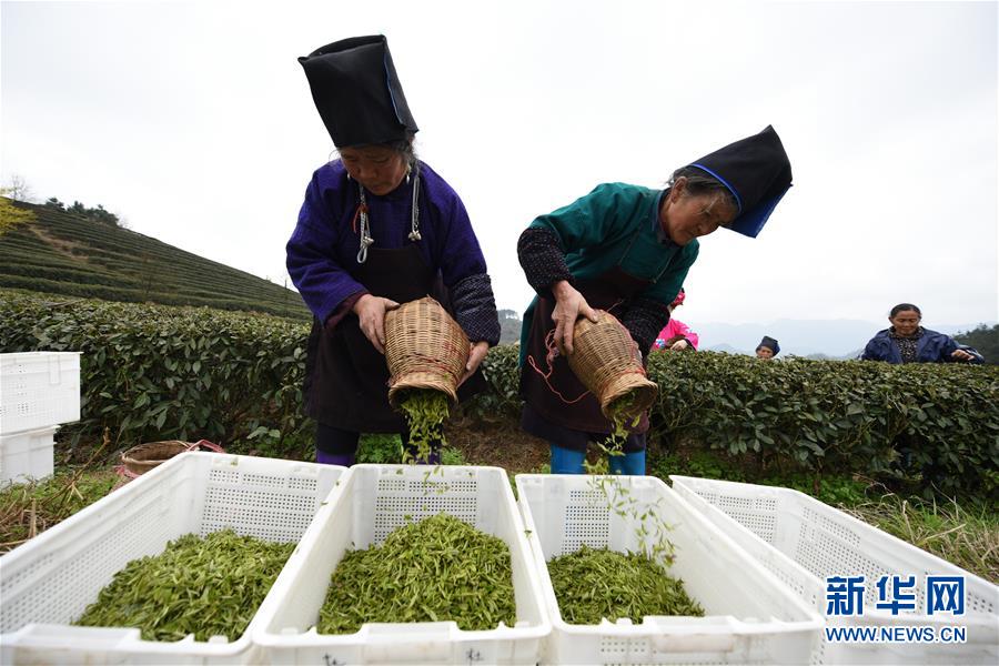 近日,隨著氣溫回升,貴州省黔東南苗族侗族自治州丹寨縣“扶貧茶園”的春茶陸續(xù)進(jìn)入采摘期。 2018年以來(lái),丹寨縣創(chuàng)新產(chǎn)業(yè)扶貧模式,采取社會(huì)公眾線上認(rèn)領(lǐng)茶園,茶園聘請(qǐng)當(dāng)?shù)刎毨魟?wù)工的“扶貧茶園”模式,為該縣貧困戶創(chuàng)造茶園管理、采茶、制茶等就業(yè)機(jī)會(huì),幫助貧困戶增收。 新華社記者 楊文斌 攝