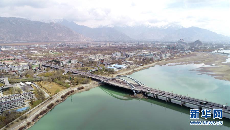 這是橫跨在拉薩河上的拉薩市區(qū)公路(4月3日無人機(jī)拍攝)。 新華社記者 晉美多吉 攝