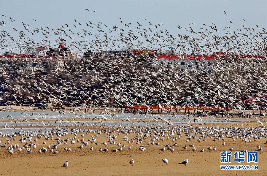 4月4日,一群候鳥在秦皇島市沿海濕地休憩。近日,大批候鳥飛抵河北省秦皇島市沿海濕地,出現(xiàn)“萬鳥臨海”奇觀。秦皇島沿海濕地鳥類食物豐富,每年春、秋兩季,大批候鳥遷徙經(jīng)過這里。新華社記者 楊世堯 攝