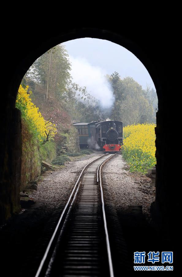 初春時(shí)節(jié),在花海中穿行的嘉陽小火車迎來了每年的旅游旺季,眾多游客慕名前來乘坐。