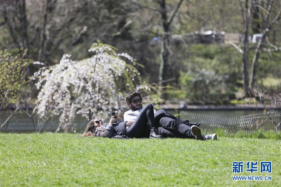 4月16日,人們在美國紐約中央公園享受春光。 新華社記者 王迎 攝