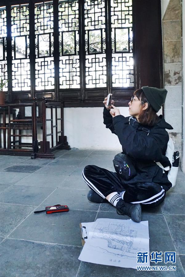 2019年4月1日,一名園林景觀專業(yè)的大學(xué)生在中國蘇州滄浪亭內(nèi)拍照。2000年,滄浪亭和藝圃、耦園、獅子林、退思園作為蘇州古典園林的擴(kuò)展項(xiàng)目被列入聯(lián)合國教科文組織世界文化遺產(chǎn)名單。 新華社記者杜涓涓攝
