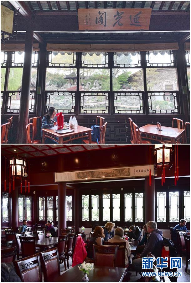 這張拼版照片展示的是:上圖,2019年4月2日,游客在中國蘇州留園內(nèi)游覽(新華社記者杜涓涓攝);下圖,2017年9月23日,在美國紐約寄興園舉行的迎中秋活動(dòng)上,孩子們在志愿者的帶領(lǐng)下參觀(新華社記者王迎攝)。