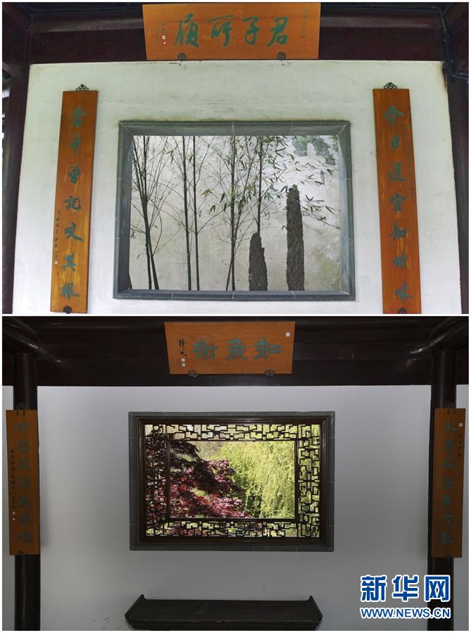 這張拼版照片展示的是:左上,2017年4月21日拍攝的美國紐約大都會博物館內(nèi)的“明軒”(新華社記者王迎攝);右上,2019年4月1日拍攝的“明軒”原型,中國蘇州網(wǎng)師園內(nèi)的殿春簃;左下,2019年4月3日拍攝的中國蘇州東園內(nèi)的“明軒”實(shí)樣;右下,2019年4月3日拍攝的中國蘇州南園內(nèi)的“明軒”(新華社記者杜涓涓攝)?!懊鬈帯痹谌蚍秶鷥?nèi)共有這四個(gè)版本。