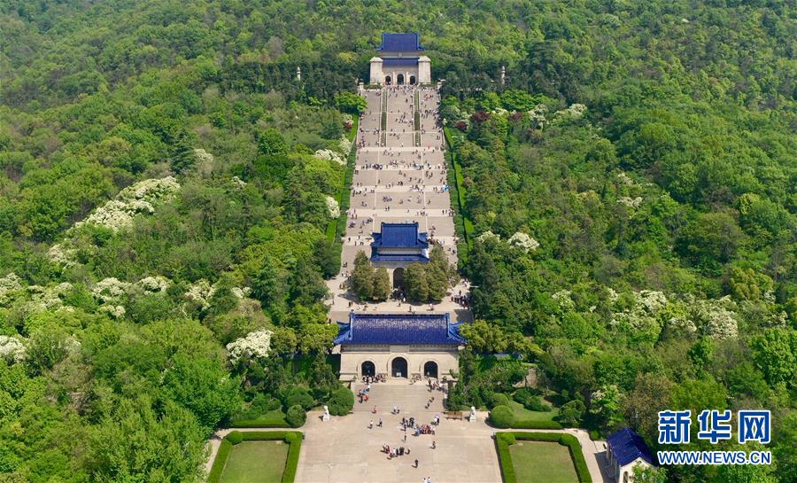 這是4月18日無(wú)人機(jī)拍攝的南京中山陵。 新華社記者 李博 攝