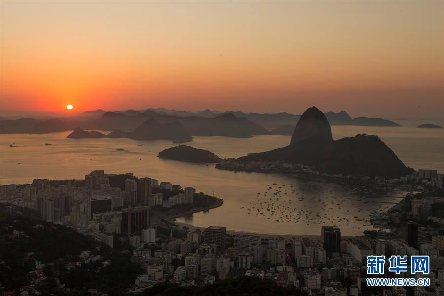 這是2015年8月7日在巴西里約熱內(nèi)盧拍攝的日出時(shí)分的瓜納巴拉灣和面包山。 新華社記者徐子鑒攝