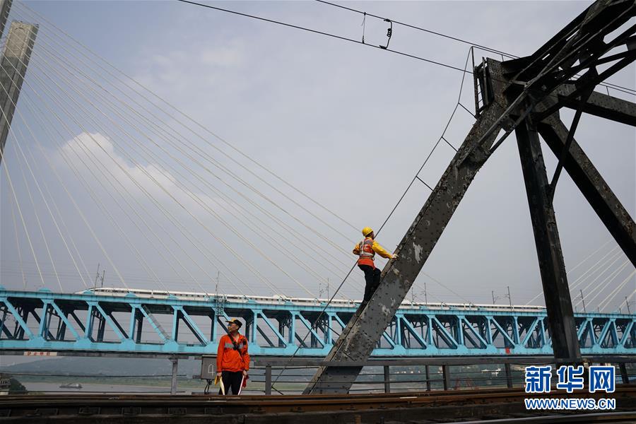 中國鐵路成都局有限公司重慶工務段的兩名橋隧工在重慶白沙沱長江大橋進行巡檢作業(yè)(4月23日攝)。 4月23日下午5點40分,隨著重慶白沙沱長江大橋通行的最后一列客運列車順利通過,這座“服役”了59年的重慶首座長江大橋進入“退役”倒計時。4月24日后,所有列車將改線經(jīng)距白沙沱長江大橋約100米的新白沙沱長江特大橋通行,新橋“接力”老橋,運輸能力將得到大幅提升。 白沙沱長江大橋于1958年開工,1960年通過首趟列車,是繼武漢長江大橋之后的第二座長江大橋。 新華社記者 劉潺 攝