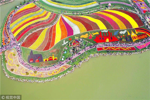 2019年4月6日,江蘇鹽城,大豐荷蘭花海景區(qū),人們在賞花游玩,盡享春光。