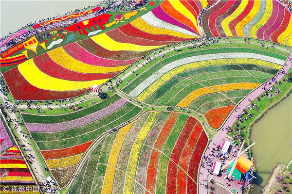 2019年4月6日,江蘇鹽城,大豐荷蘭花海景區(qū),人們在賞花游玩,盡享春光。