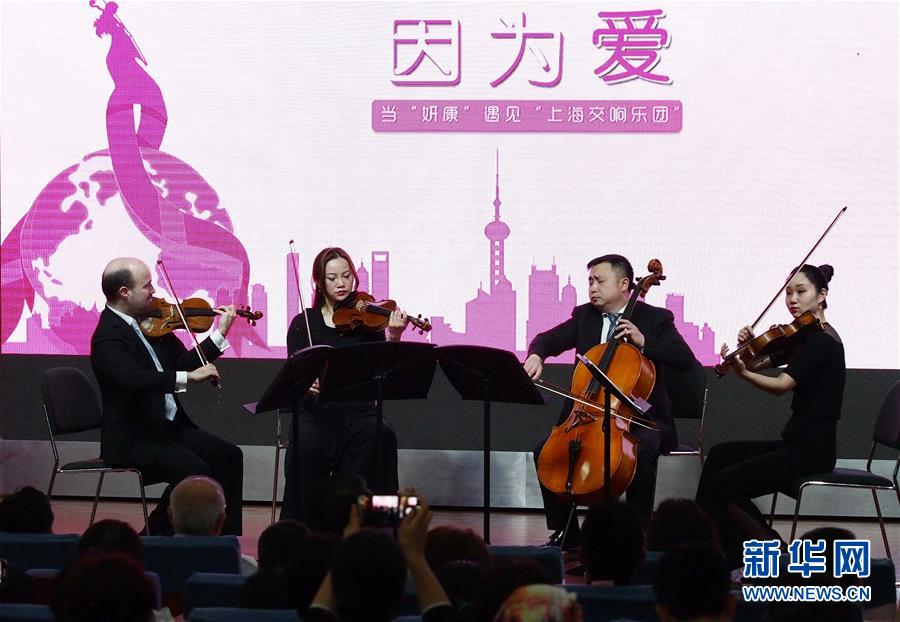 4月25日,上海交響樂(lè)團(tuán)的藝術(shù)家在復(fù)旦大學(xué)附屬腫瘤醫(yī)院為患者和醫(yī)護(hù)人員演奏。 當(dāng)日,第一場(chǎng)“全城交響·上交為你而來(lái)”音樂(lè)會(huì)在復(fù)旦大學(xué)附屬腫瘤醫(yī)院報(bào)告廳奏響,為患者及醫(yī)護(hù)人員獻(xiàn)上一場(chǎng)專屬音樂(lè)會(huì)?!叭墙豁憽ど辖粸槟愣鴣?lái)”是上海交響樂(lè)團(tuán)2019年向全上海的機(jī)構(gòu)及個(gè)人開(kāi)放的公益演出項(xiàng)目。 新華社記者 任瓏 攝