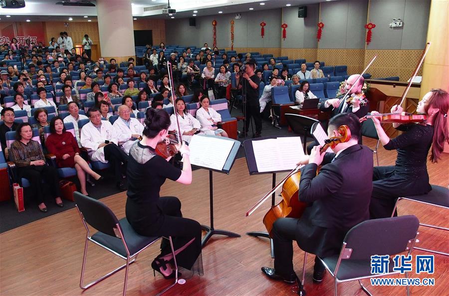 4月25日,上海交響樂團(tuán)的藝術(shù)家在復(fù)旦大學(xué)附屬腫瘤醫(yī)院為患者和醫(yī)護(hù)人員演奏。 當(dāng)日,第一場“全城交響·上交為你而來”音樂會(huì)在復(fù)旦大學(xué)附屬腫瘤醫(yī)院報(bào)告廳奏響,為患者及醫(yī)護(hù)人員獻(xiàn)上一場專屬音樂會(huì)。“全城交響·上交為你而來”是上海交響樂團(tuán)2019年向全上海的機(jī)構(gòu)及個(gè)人開放的公益演出項(xiàng)目。 新華社記者 任瓏 攝