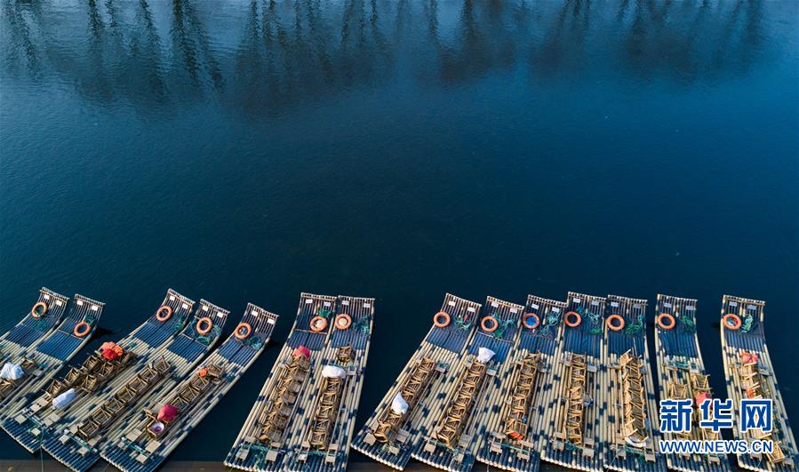 這是福建省武夷山風景名勝區(qū)九曲溪邊??康闹穹ぃ?月11日無人機拍攝)。 新華社記者 宋為偉 攝