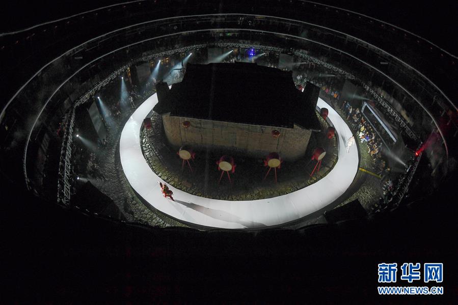4月27日,表演結(jié)束后,模特在向觀眾致意。 當(dāng)日,土樓光語國際時尚大秀在福建省南靖縣的土樓裕昌樓內(nèi)舉行。這場融匯文化、時尚與旅游元素的大秀,通過傳統(tǒng)與時尚的有機(jī)融合,展現(xiàn)南靖土樓及文化的魅力和風(fēng)采。 新華社記者魏培全攝
