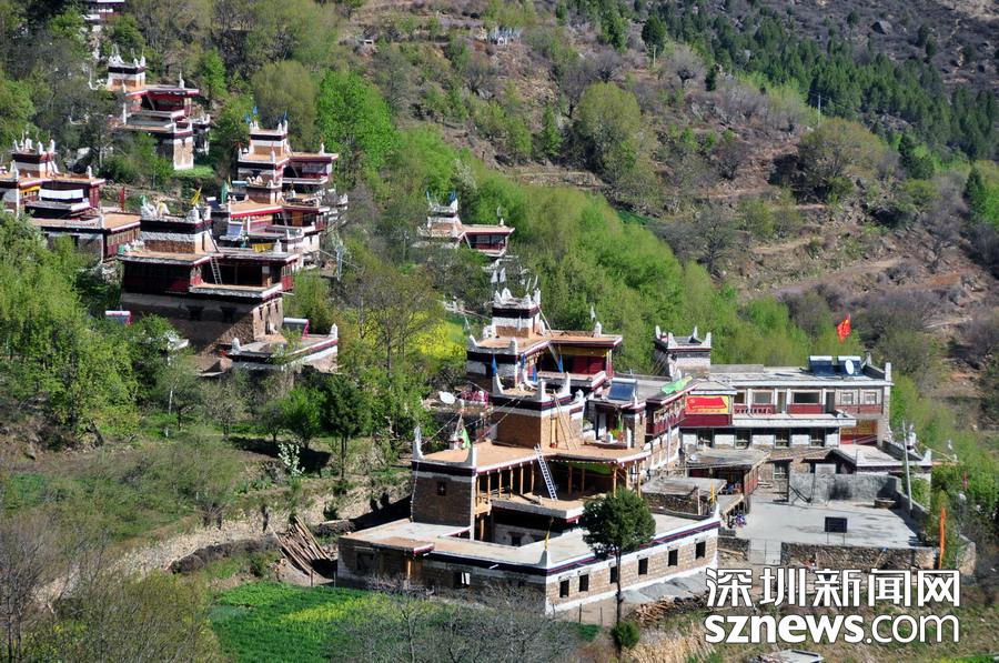 “甲居”,藏語(yǔ)是百戶人家之意。甲居藏寨距丹巴縣城約8公里,從大金川河谷層層向上攀緣,一直伸延到卡帕瑪群峰腳下。在相對(duì)高差近千米的山坡上,一幢幢藏式樓房和碉樓灑落在綠樹鮮花叢中,將田園牧歌式的風(fēng)光展示在人們眼前。李仁奇攝