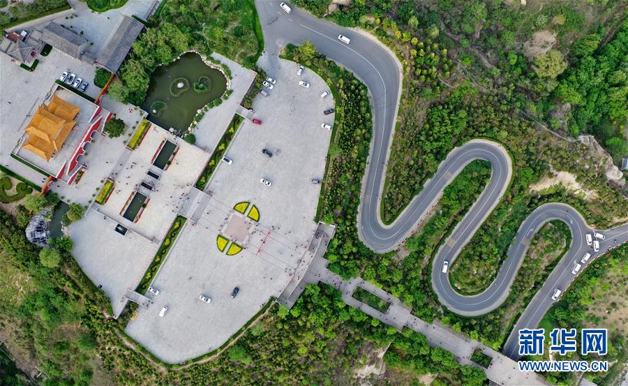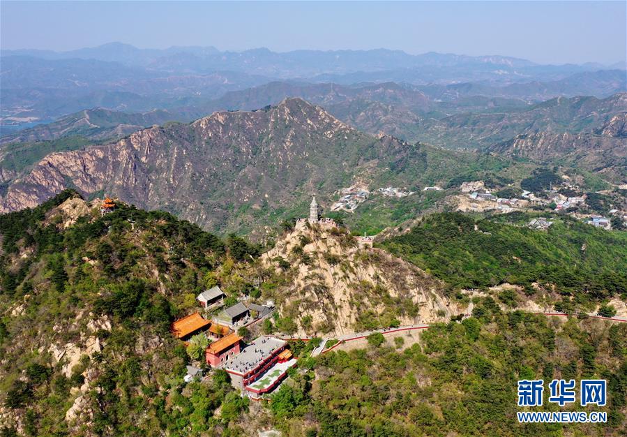 這是4月19日拍攝的盤山風景名勝區(qū)正門景觀(無人機拍攝)。新華社記者 李然 攝