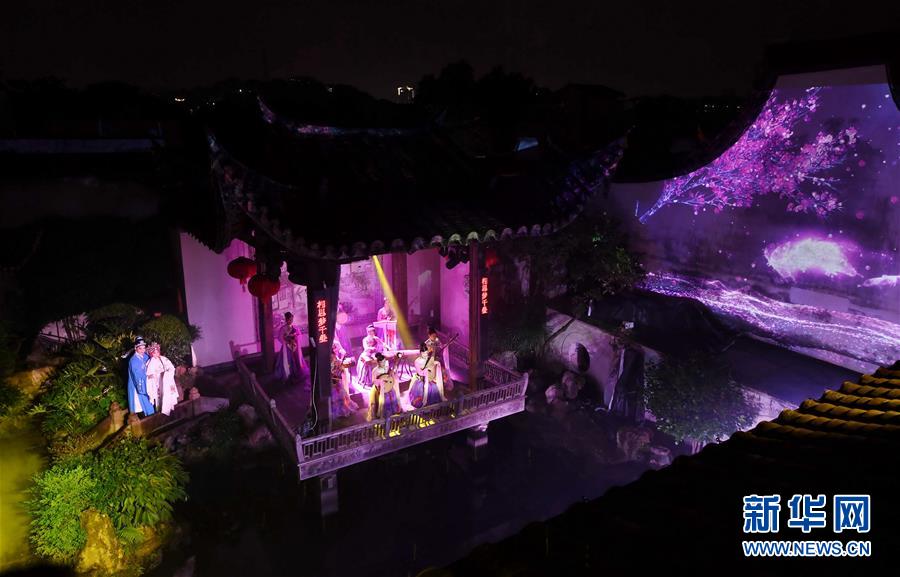 5月5日,演員在福州三坊七巷的水榭戲臺表演傳統(tǒng)文化演出。 福州三坊七巷為國內(nèi)現(xiàn)存規(guī)模較大、保護較為完整的歷史文化名街區(qū),是中國十大歷史文化名街之一。位于三坊七巷內(nèi)的水榭戲臺經(jīng)常舉辦傳統(tǒng)文化演出吸引游客慕名前來觀賞。 新華社記者 林善傳 攝