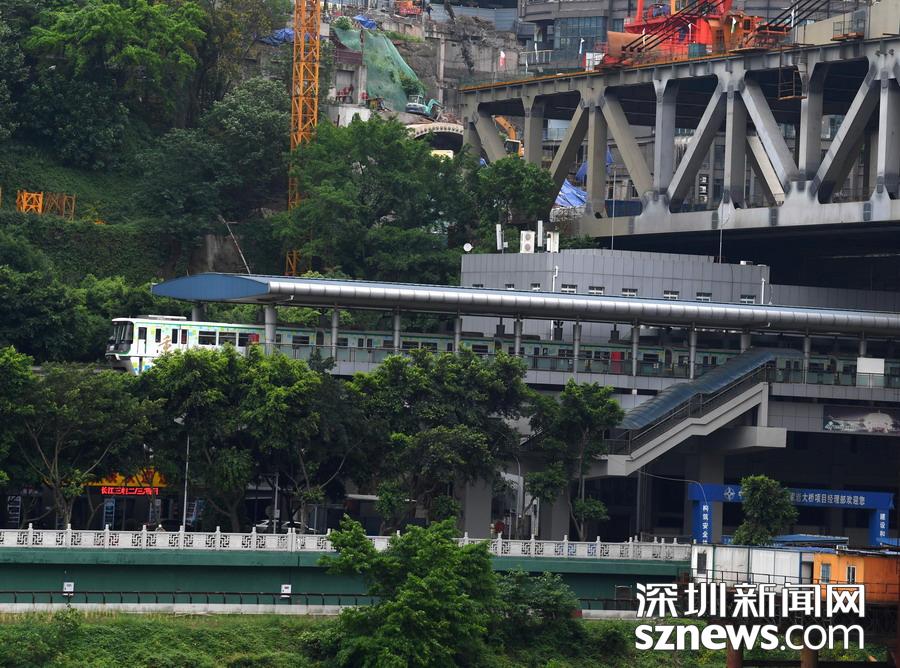 主橋鋼桁梁共44個(gè)節(jié)段,用鋼量約2.4萬噸,高栓63萬套。主橋上部結(jié)構(gòu)采用雙層橋面鋼桁梁形式,上層為雙向6車道及兩側(cè)人行道,下層為雙線城市軌道交通十號(hào)線,是國(guó)內(nèi)首個(gè)把軌道換乘站建在橋面上的公軌兩用橋。而在曾家?guī)r嘉陵江大橋渝中區(qū)橋頭正下方,則是重慶軌道交通二號(hào)線的曾家?guī)r站,該線路也是重慶最早投入運(yùn)行的軌道交通線路。