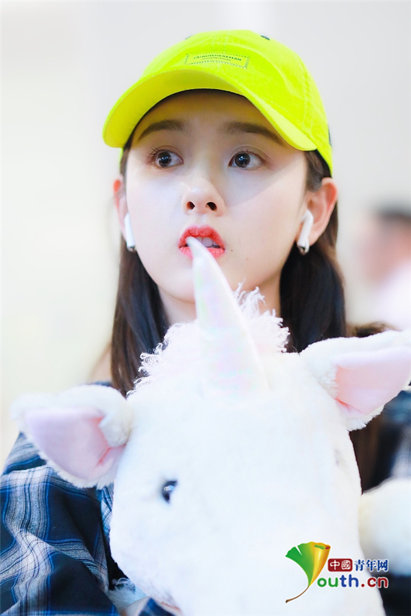 2019年5月12日,北京,宋祖兒現(xiàn)身機場。她穿格子襯衫戴小黃帽揮手大步走,元氣少女活力滿滿,抱玩偶變身獨角獸女孩童趣十足超可愛。