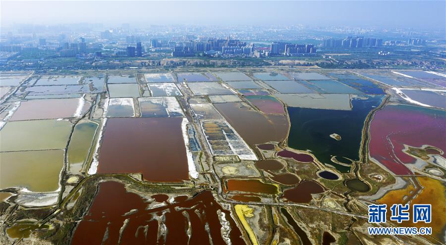這是4月23日無人機(jī)拍攝的山西運(yùn)城鹽湖。新華社記者 曹陽 攝