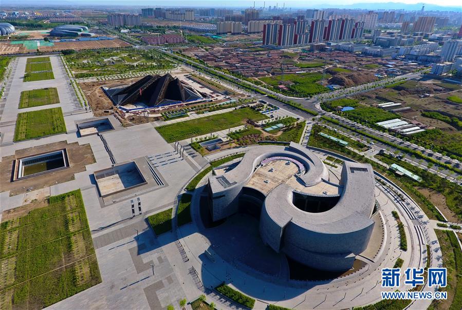 這是2017年5月17日無人機(jī)拍攝的大同市博物館(前)和美術(shù)館及周邊景色。新華社記者 曹陽 攝