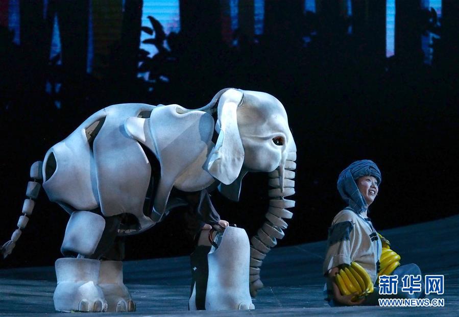 5月15日在上海美琪大戲院拍攝的新版大型人偶舞臺(tái)劇《最后一頭戰(zhàn)象》劇照。 當(dāng)日,作為第12屆中國藝術(shù)節(jié)的參演劇目,大型人偶舞臺(tái)劇《最后一頭戰(zhàn)象》在經(jīng)過4次硬件技術(shù)升級(jí)和故事修改后亮相上海美琪大戲院。 新華社記者 任瓏 攝