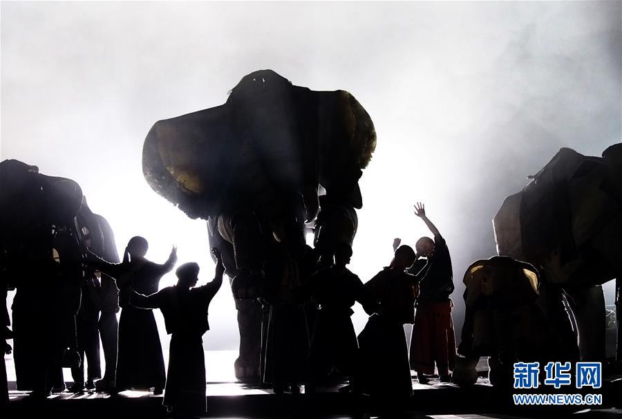 5月15日在上海美琪大戲院拍攝的新版大型人偶舞臺劇《最后一頭戰(zhàn)象》劇照。 當日,作為第12屆中國藝術節(jié)的參演劇目,大型人偶舞臺劇《最后一頭戰(zhàn)象》在經(jīng)過4次硬件技術升級和故事修改后亮相上海美琪大戲院。 新華社記者 任瓏 攝
